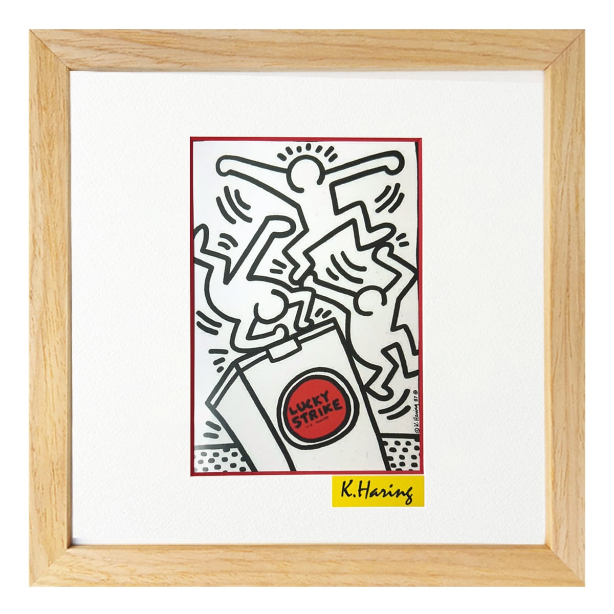 [額縁付き] キース・ヘリング「Lucky Strike」アートポスター ストリートアート ナチュラルフレーム 275×275mm AFKH09